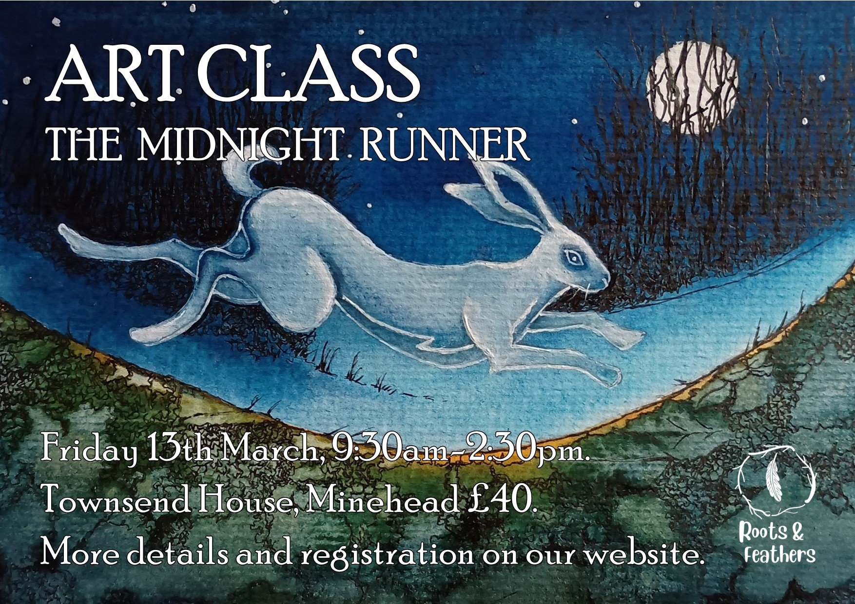 An illustration workshop using watercolours and ink and some very clever techniques to create this mystical running hare illustration.